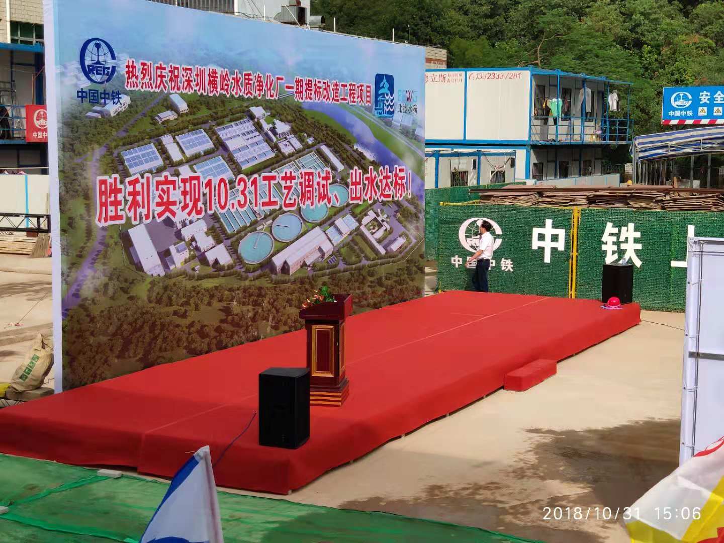 2018年10月31日,中国中铁与北控水务集团举办了横岭水质净化厂一期提标改造工程顺利通水达标的庆祝仪式,参加仪式的有:北控水务集团南部大区副总经理、北控建设部总负责人、中铁上海局广东海南大区总经理、中铁上海局书记、上海设计院、深圳横岭水质净化厂厂长以及各大媒体等。