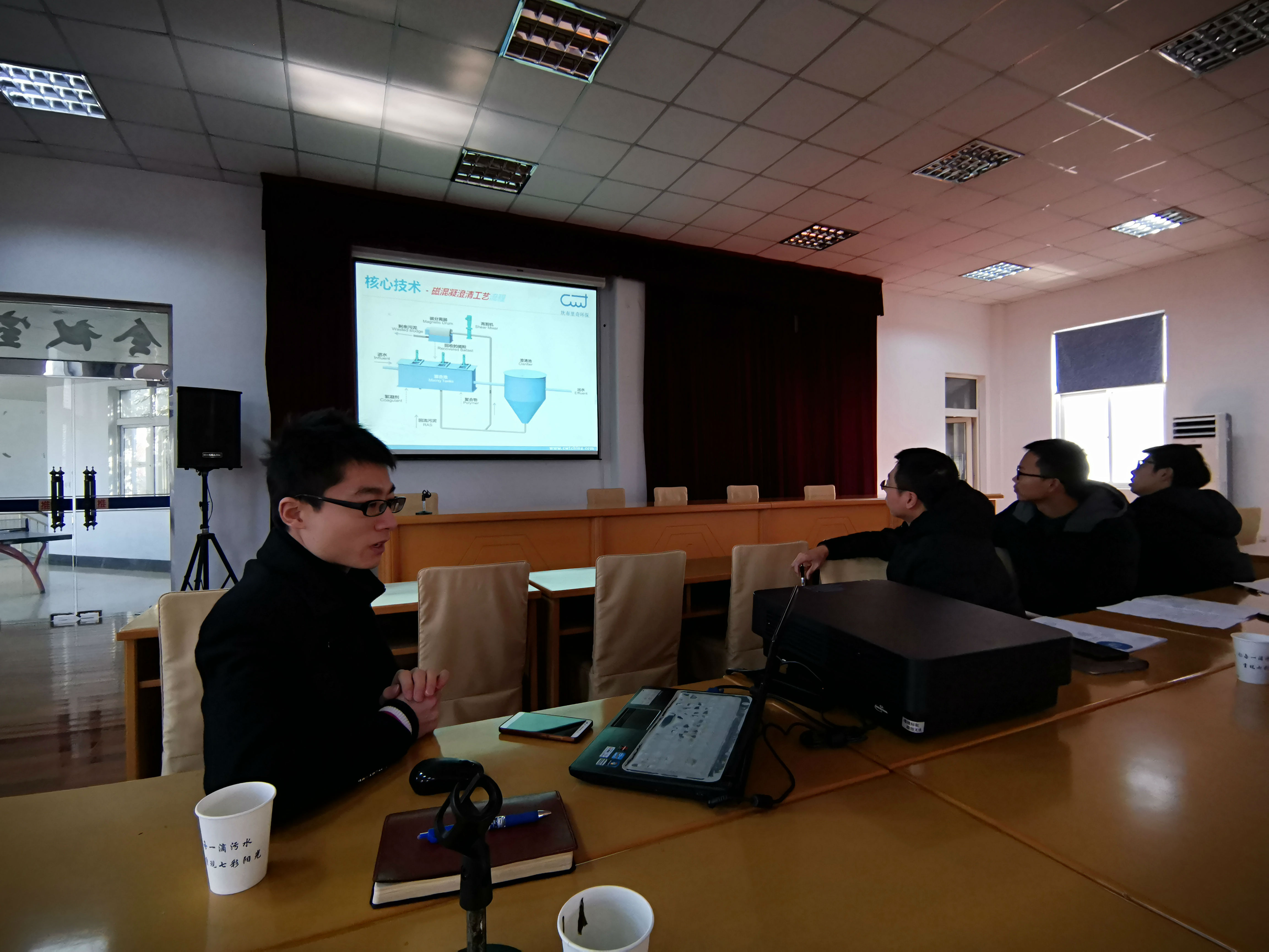 我公司技术部工程师和营销部人员为他们详细地讲解了我司磁混凝的工艺流程及核心技术,并针对对方感兴趣的磁混凝工艺相关技术问题,一一做了详细解答,并以实际案例来证明我司磁混凝工艺的优势,领导们对我司的技术表示了认可,也表达了希望以后合作的意愿。