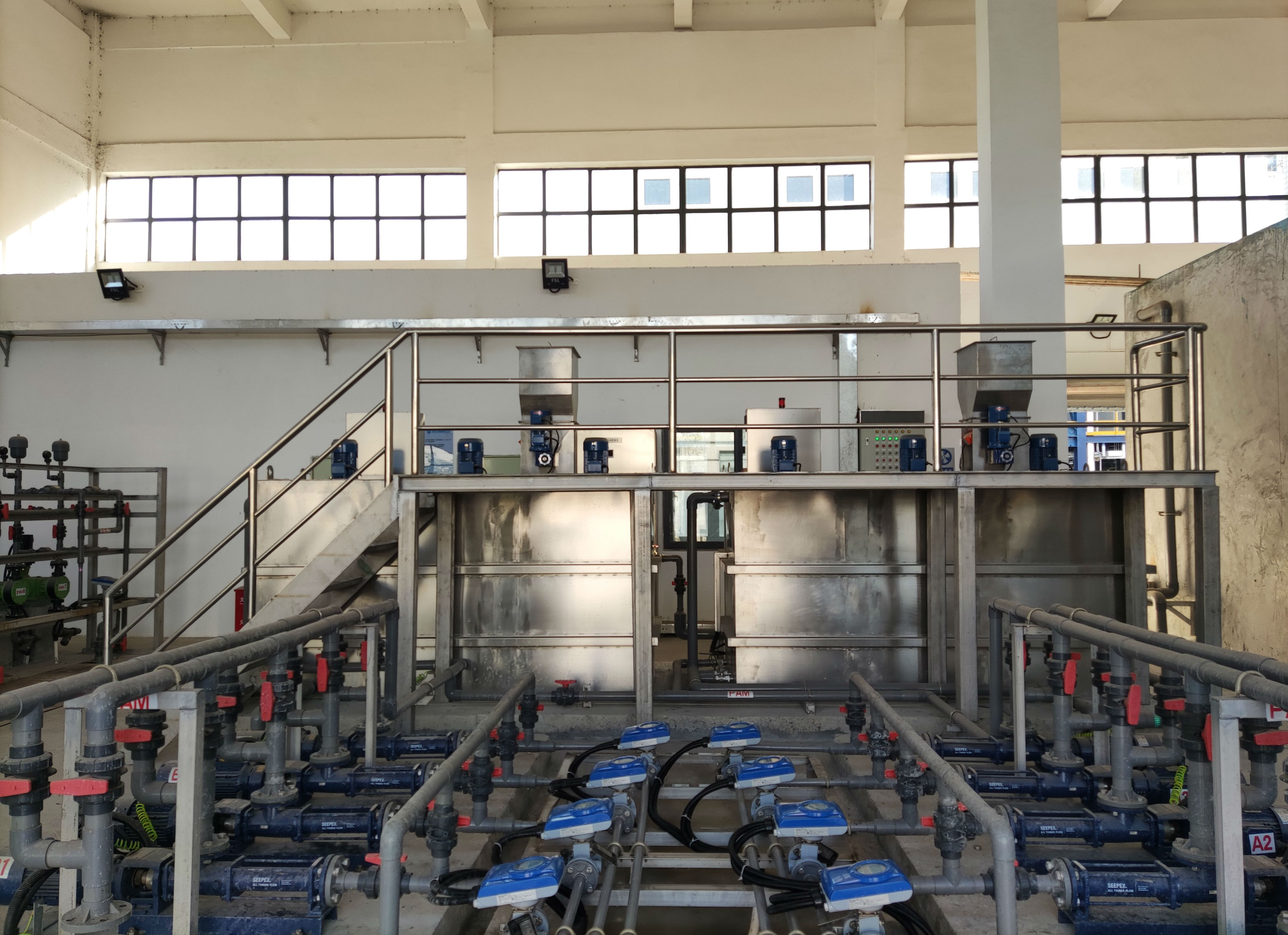 我司承建的东莞市市区污水处理厂提标工程磁混凝系统于2021年1月15日顺利通过竣工验收,此项目共有八组沉淀池,日处理量高达40万吨,是目前我司承建的日处理量最多、规模最大的磁混凝澄清池项目。
