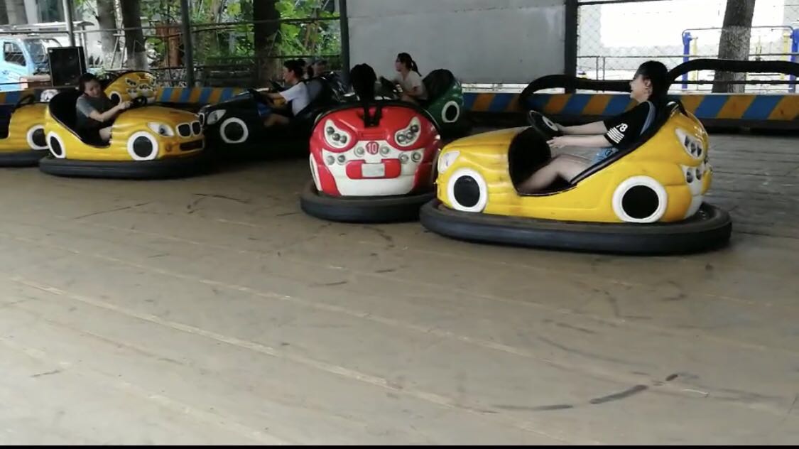 玩碰碰车的时候大家在场地里尽情的碰撞,每一次碰撞都开怀大笑,